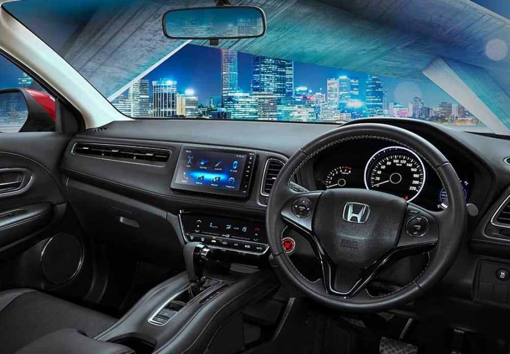 Interior New Honda HR-V yang dibalut dengan kombinasi material kulit di setiap detailnya semakin memperkuat kesan sporty dan mewah.